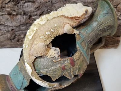 The WT Line Axanthic crested geckos were produced several years ago at Wild Things Exotic Animals Inc. from a pair of our breeders. We first held back all offspring from the original breeding pair until we could prove we had a true genetic line of Axanthic Crested Geckos. We also crossed out some from the originals to add diversity to our bloodline. In the summer of 2019 we were producing Axanthic crested geckos from visual to visual pairing. The WT Line Axanthic Crested Geckos are a beautiful light gray with remarkably high white accents. When fired up they turn dark while retaining the bright white.